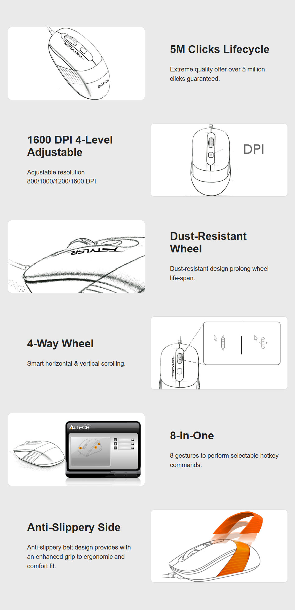 A4Tech FM10S 1600 DPI Lightweight Optical Wired Mouse