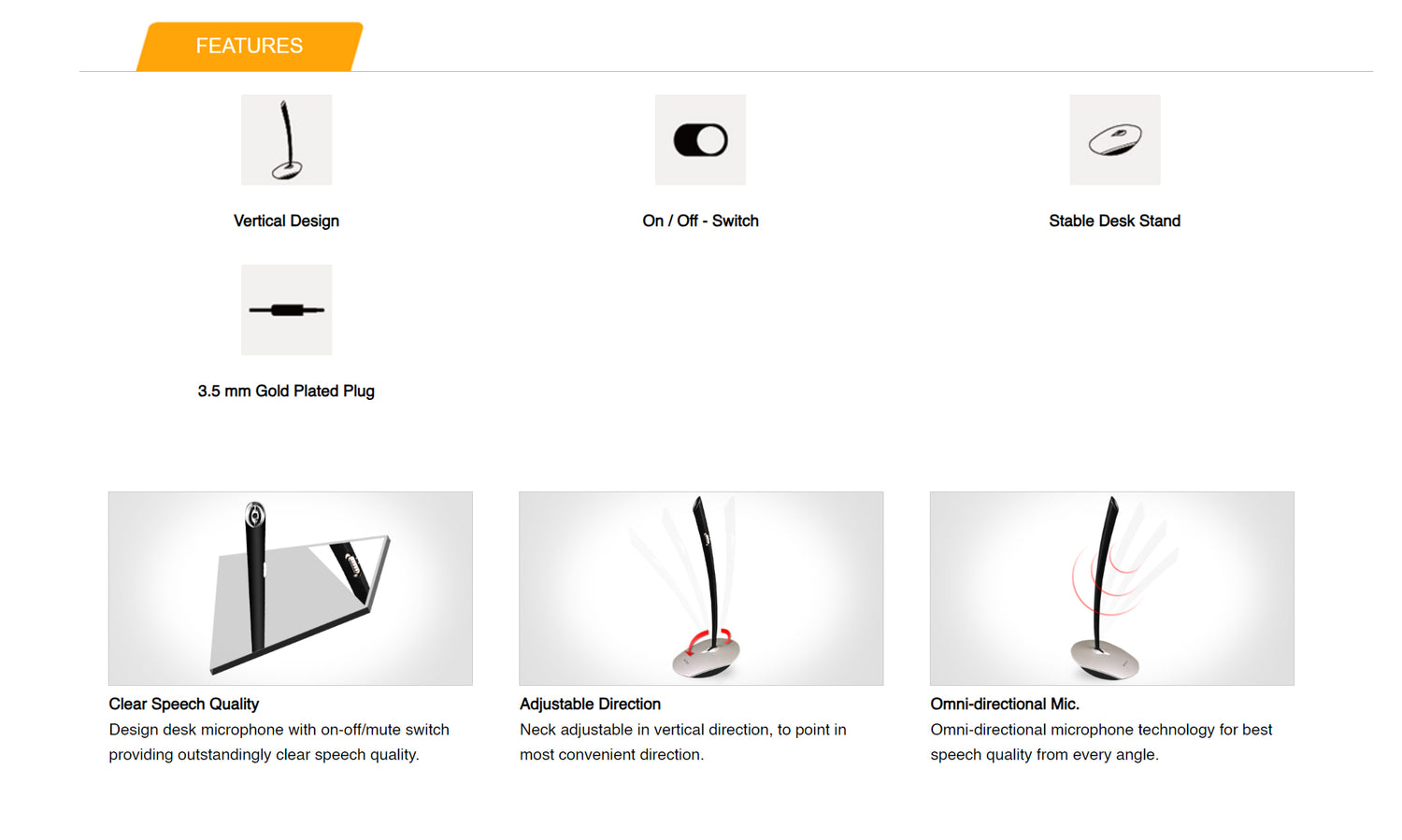 A4Tech MI-10 Vertical Design Stable Desk Stand 3.5mm Gold Plated Plug Desktop Microphone