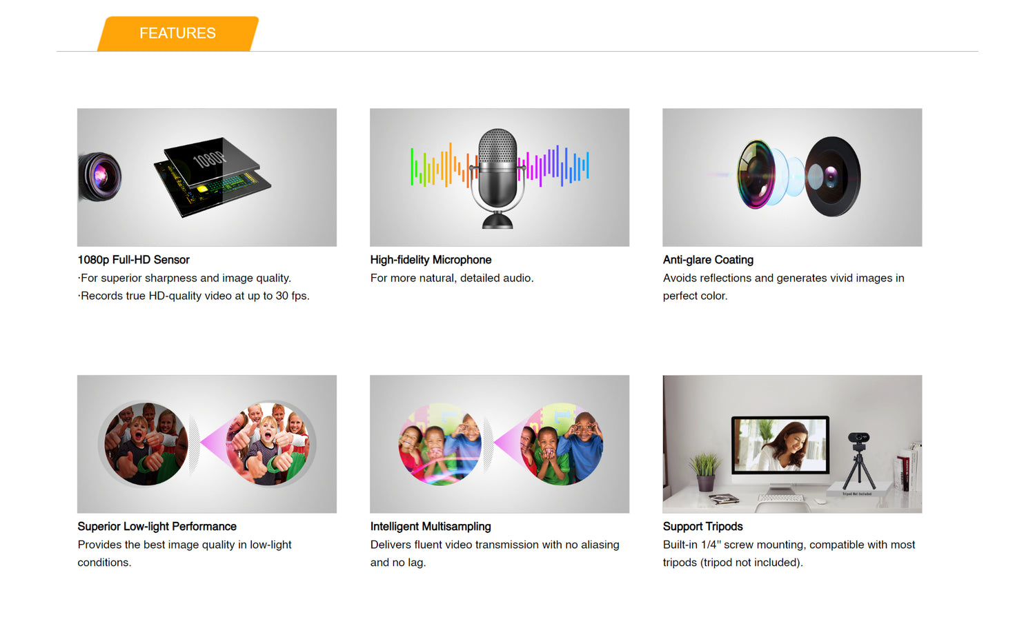 A4Tech PK-925H Full HD 1920x1080P Glass Lens Built-In High-Fidelity Mic Wired Fixed Focus Webcam