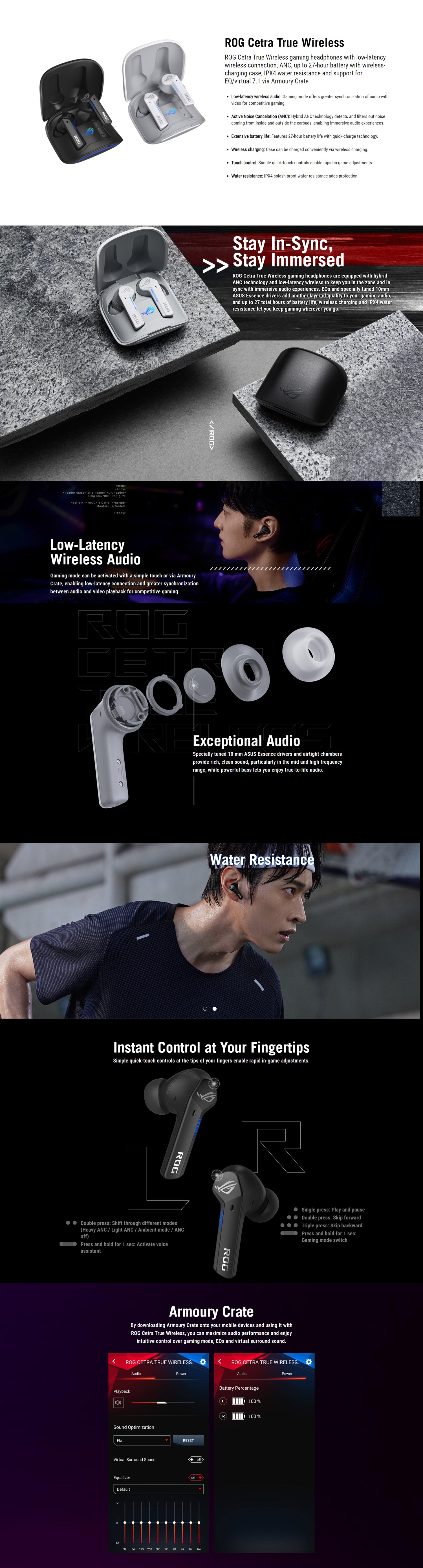 Asus ROG Cetra True Touch Control Low-Latency Audio Connection ANC Wireless In-Ear Gaming Headphones