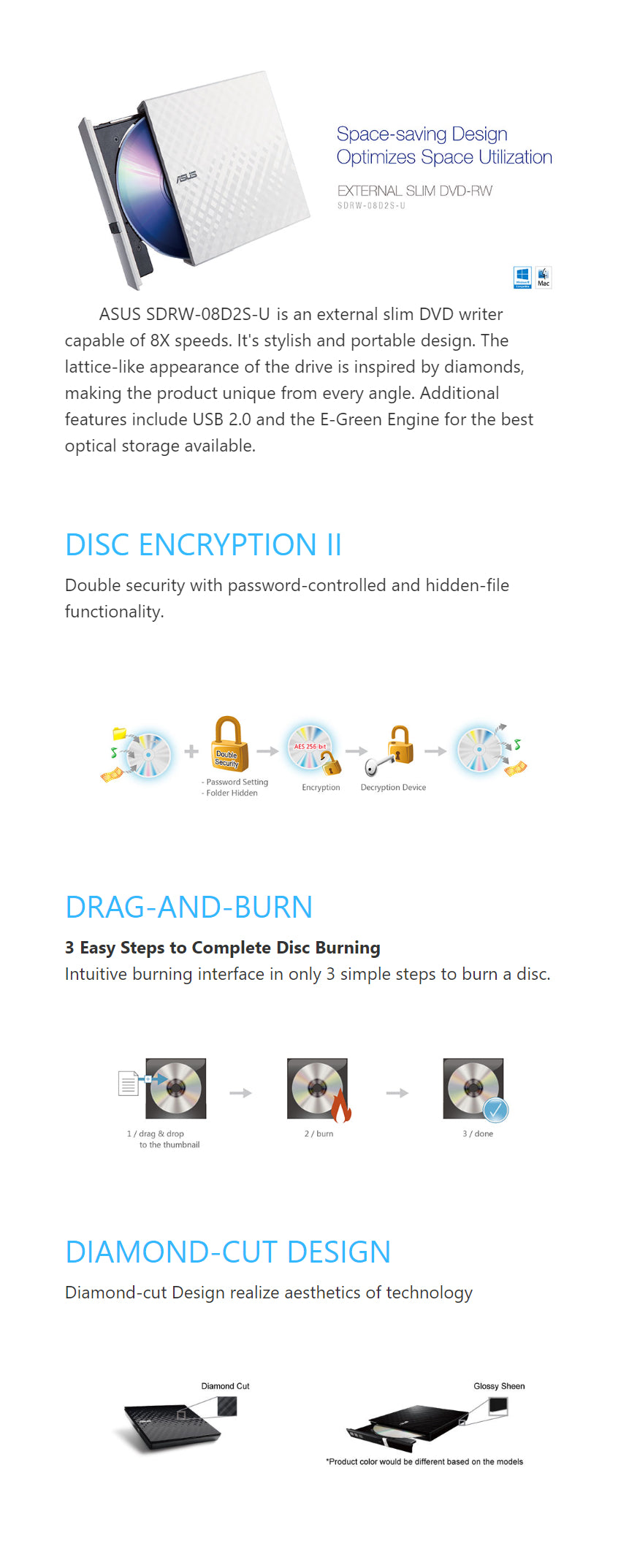 Asus SDRW-08D2S-U Portable 8X DVD Burner with M-DISC Support For Robust Data Backup
