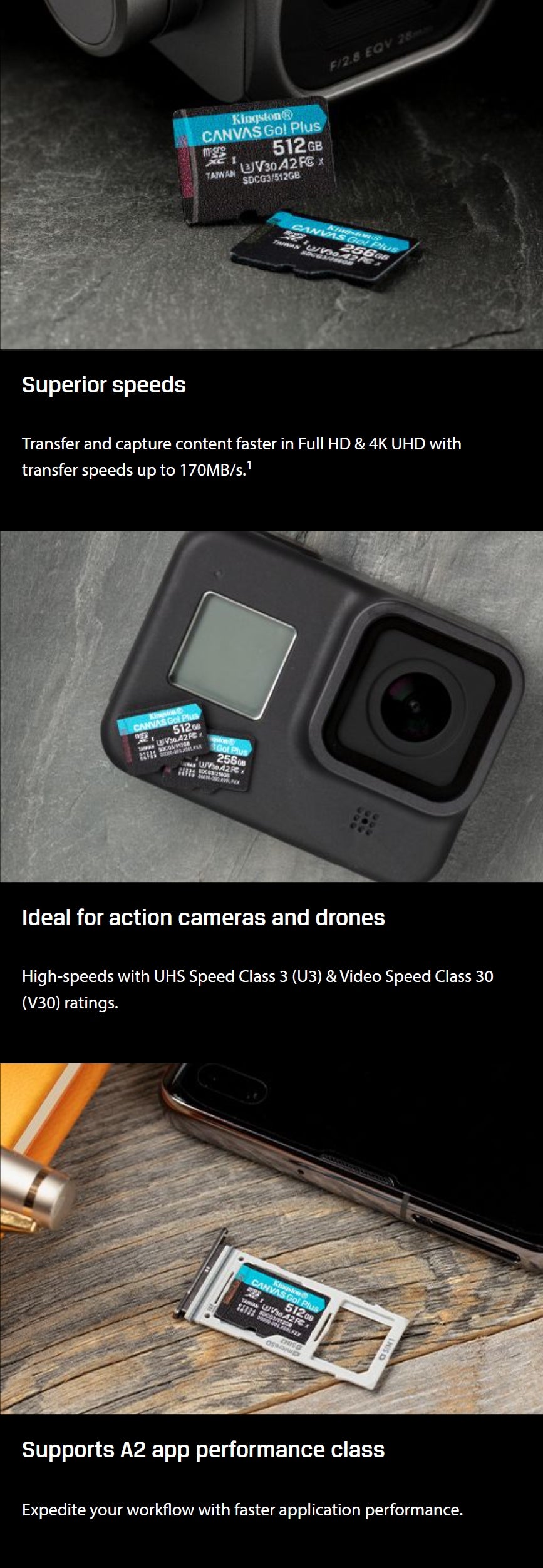 Kingston Canvas Go Plus 64GB/128GB/256GB/512GB MicroSDXC MicroSD Memory Card