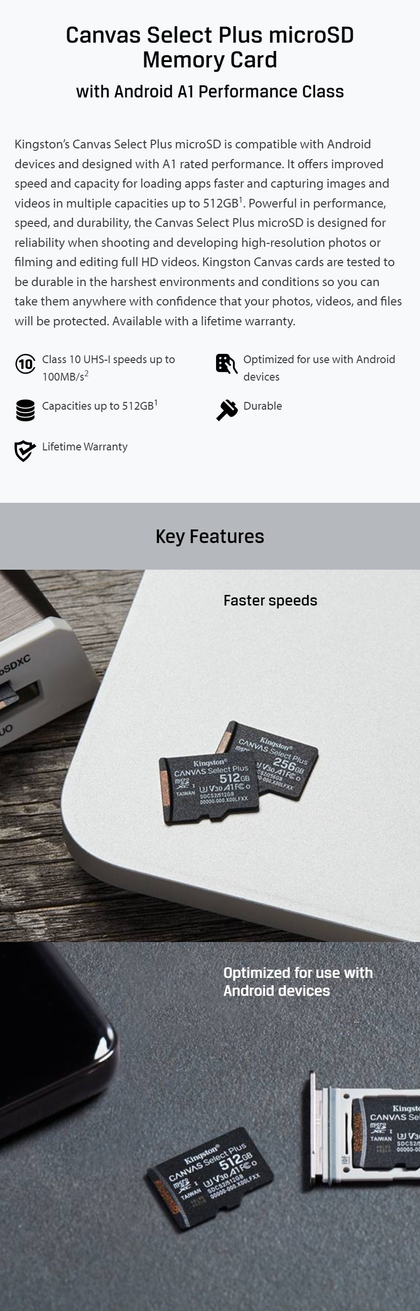 Kingston Canvas Select Plus SD Card 32GB/64GB/128GB/256GB/512GB MicroSDHC MicroSDXC MicroSD Card