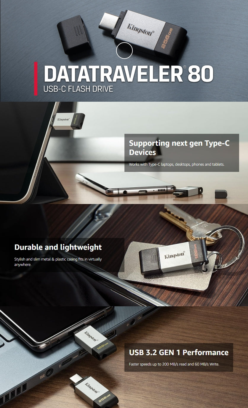 Kingston DataTraveler 80 32GB/64GB/128GB/256GB USB Type-C Flash Drive