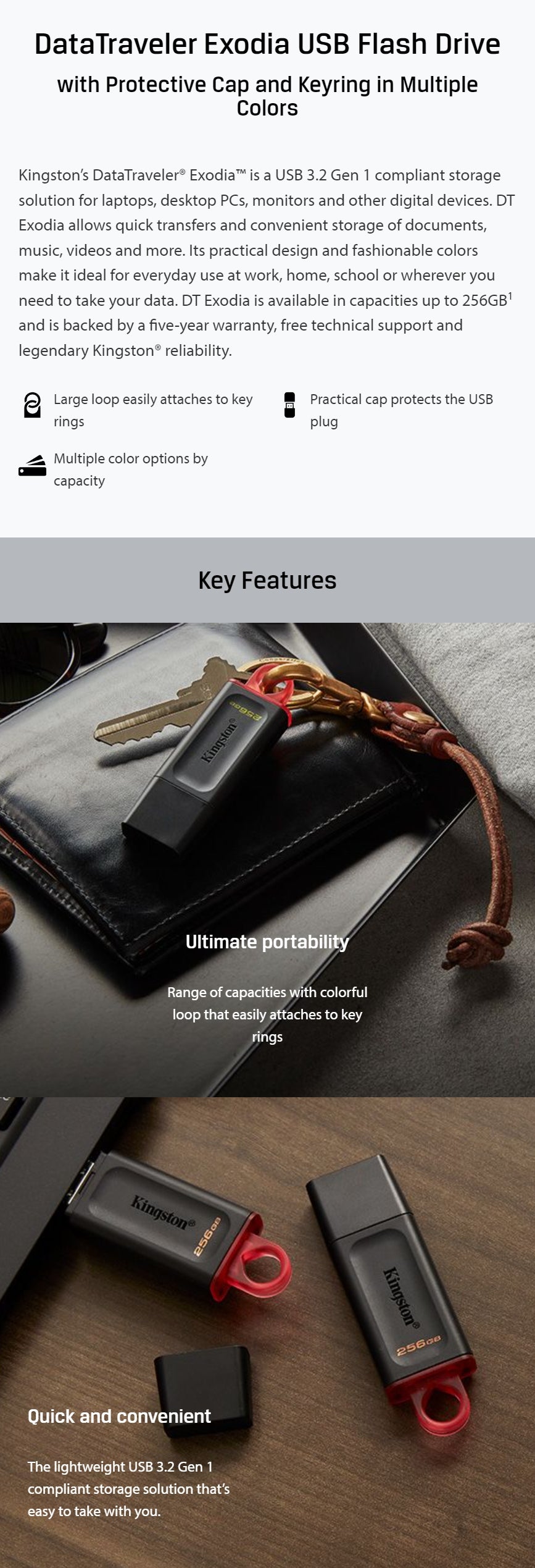 Kingston DataTraveler Exodia 32GB/64GB/128GB/256GB USB 3.2 Gen 1 USB Flash Drive