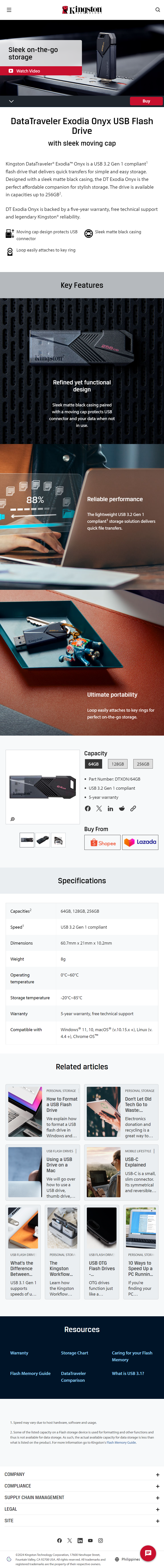 Kingston DataTraveler Exodia Onyx 64GB/128GB/256GB USB 3.2 Gen 1 Series USB Flash Drive