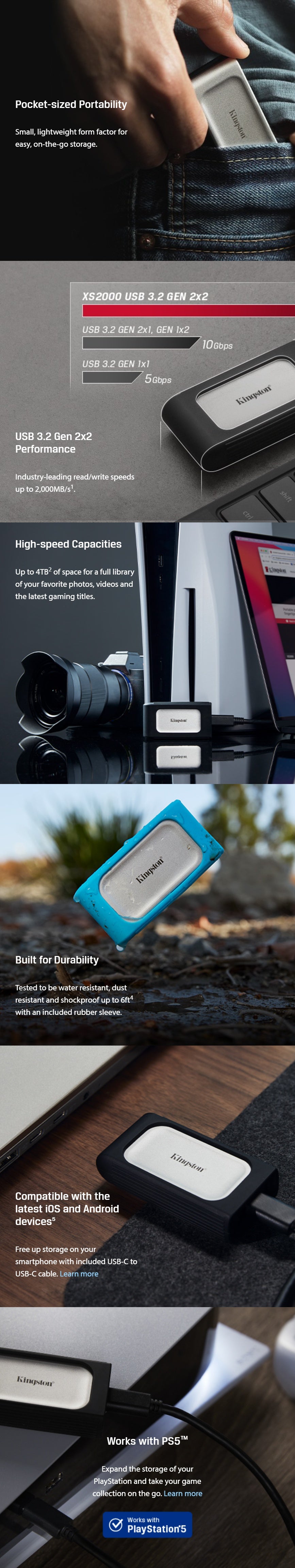 Kingston XS2000 500GB/1TB/2TB High-performance External Portable Solid State Drive SSD