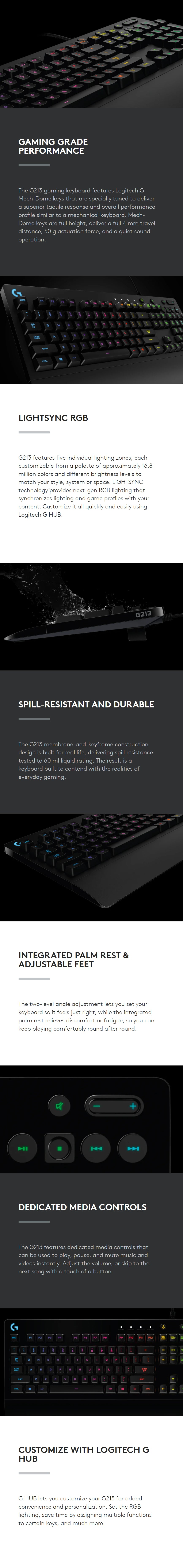 Logitech G213 Prodigy RGB Backlit Wired Gaming Keyboard