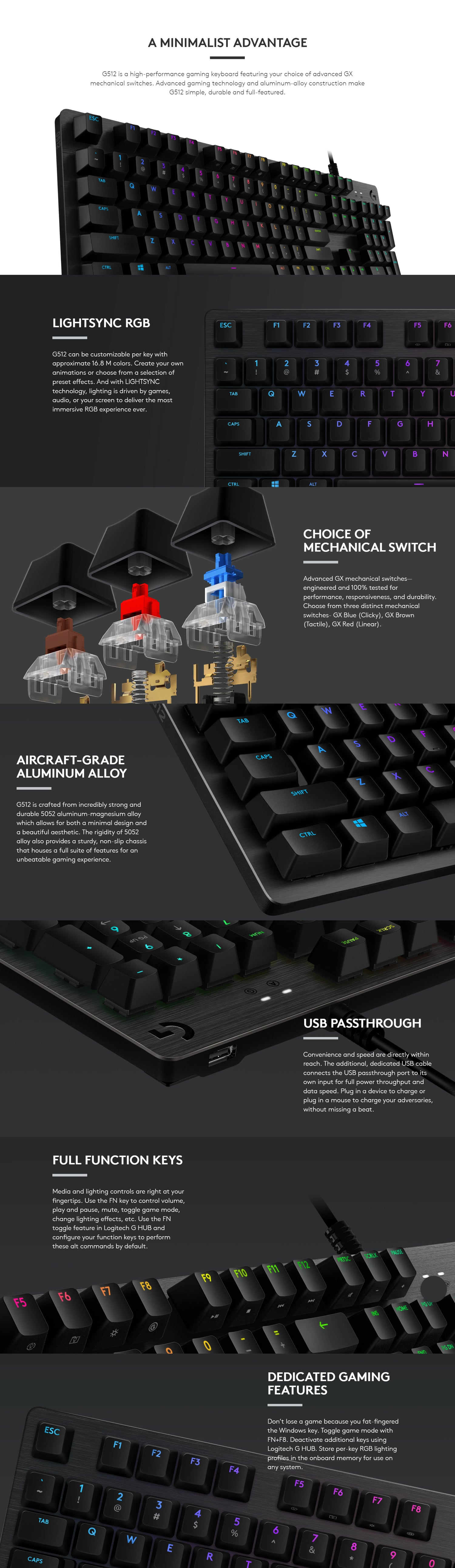 Logitech G512 Carbon Lightsync RGB GX Switch Wired Mechanical Gaming Keyboard