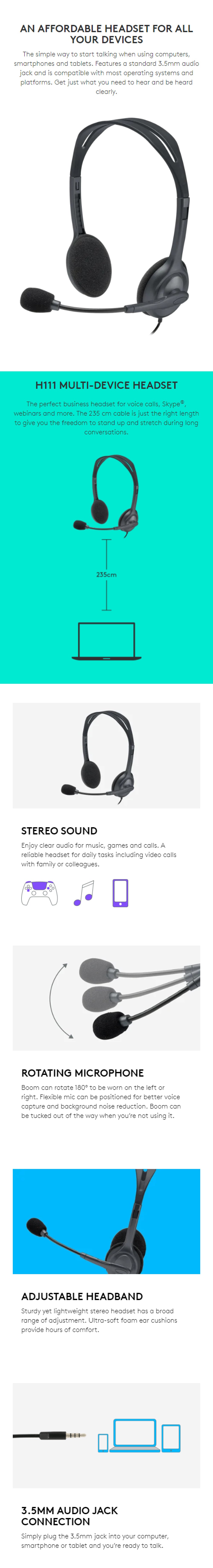 Logitech H111 Wired Headset, Stereo Headphones with Noise-Cancelling Microphone