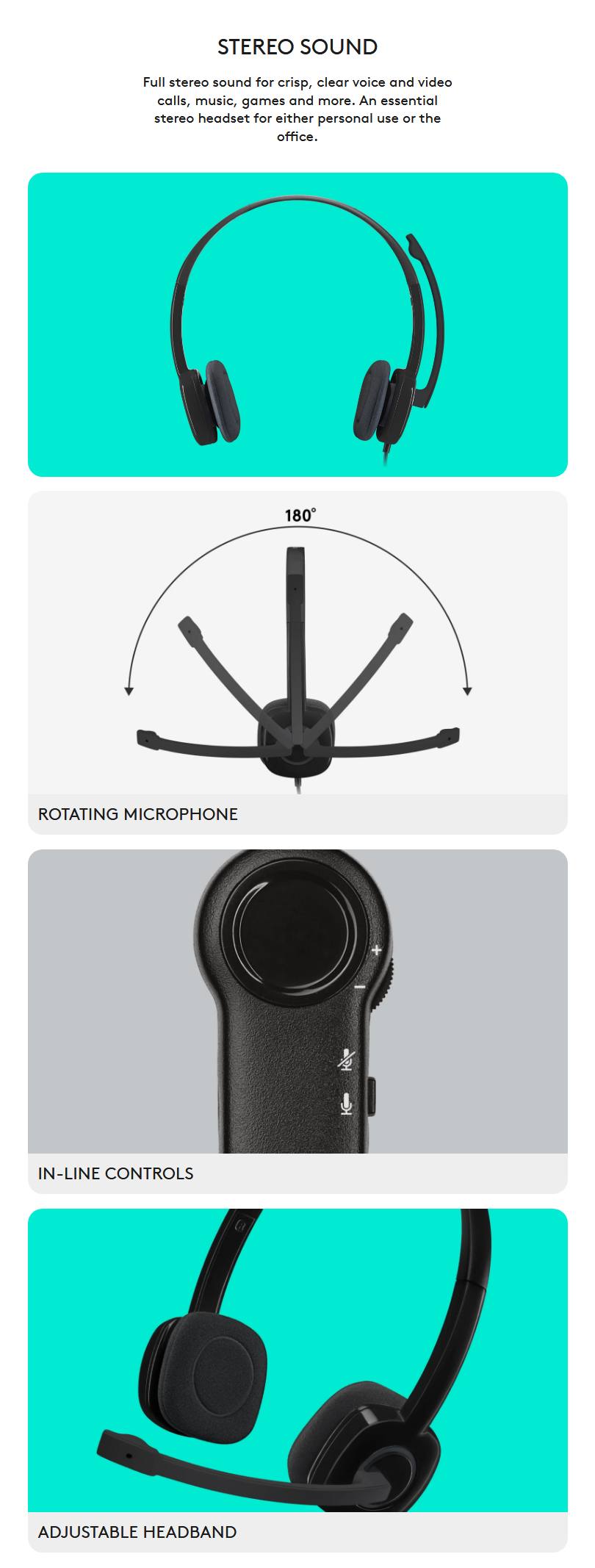 Logitech H151 Lightweight Multi-Device Adjustable Stereo Headset With Single 3.5mm Jack