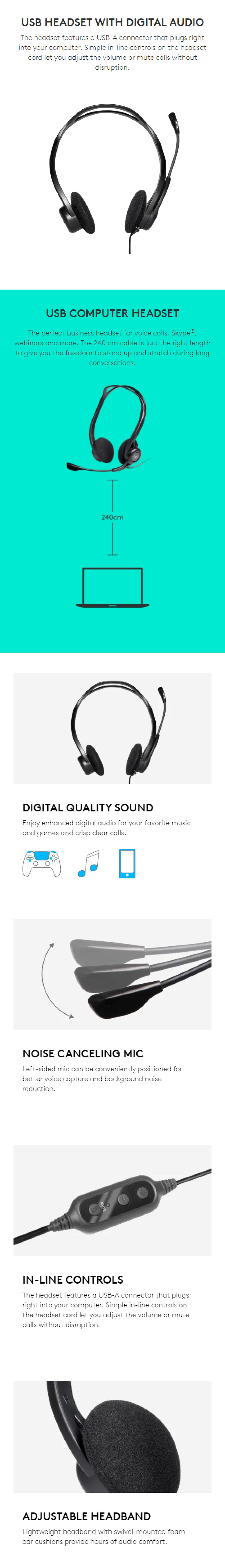 Logitech H370 USB Computer Headset With Noise-Cancelling Microphone