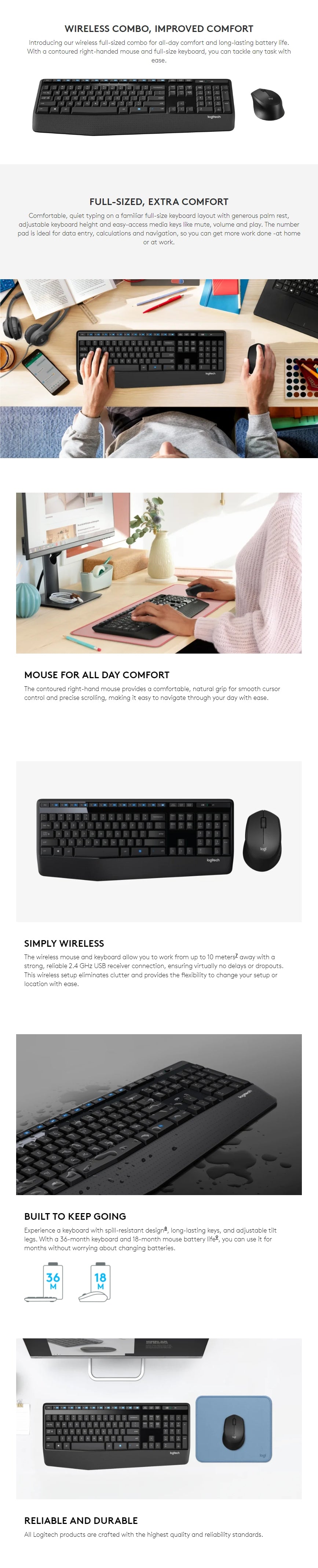 Logitech MK345 Wireless Combo Full-sized Keyboard with Palm Rest