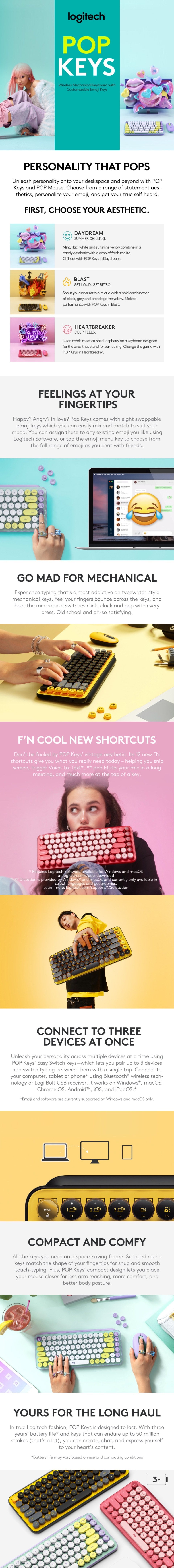 Logitech POP Keys Customizable Emoji Keys Multi-Device USB Mechanical Wireless Keyboard