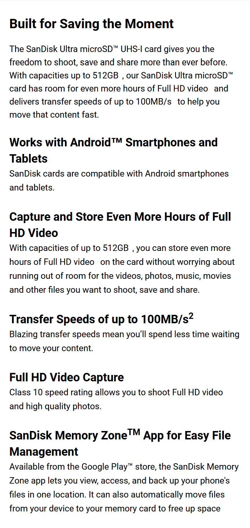 SanDisk Ultra 16GB/32GB/64GB/128GB MicroSDHC MicroSDXC UHS-I MicroSD Card Memory Card - White/Grey
