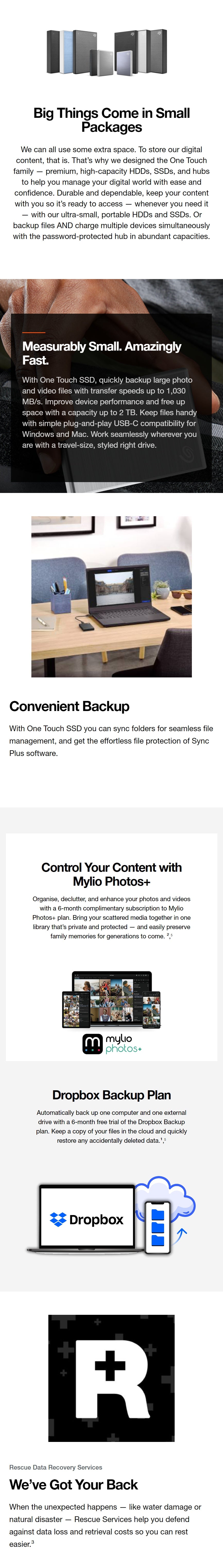 • Up to 2TB capacity helps keep all your files, movies and photos in one place
