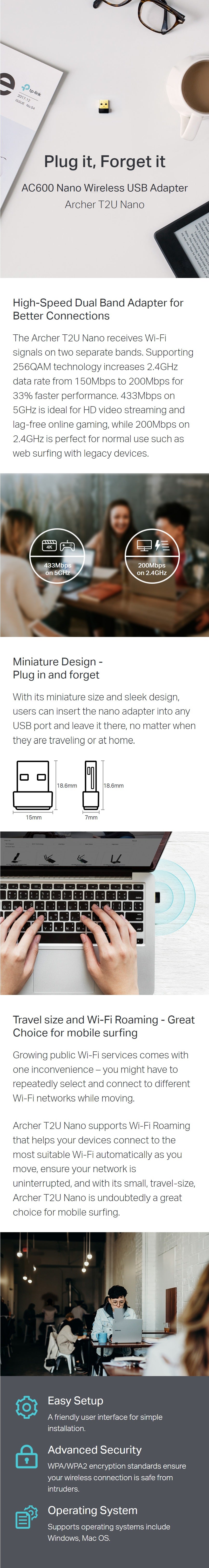 TP-Link Archer T2U Nano AC600 Nano Wireless USB Adapter